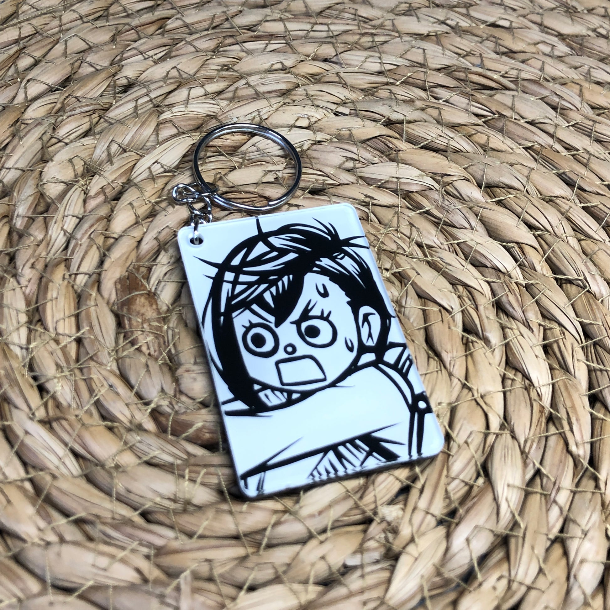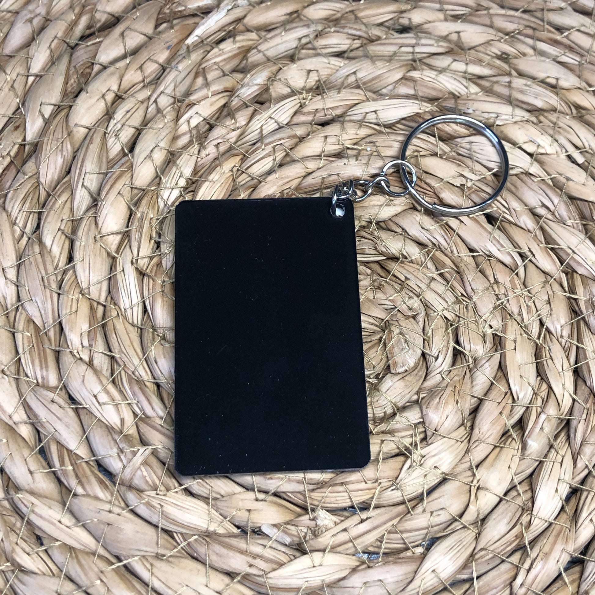 Este exclusivo llavero de metacrilato resistente mide 4cm x 6cm y está completamente pintado a mano.